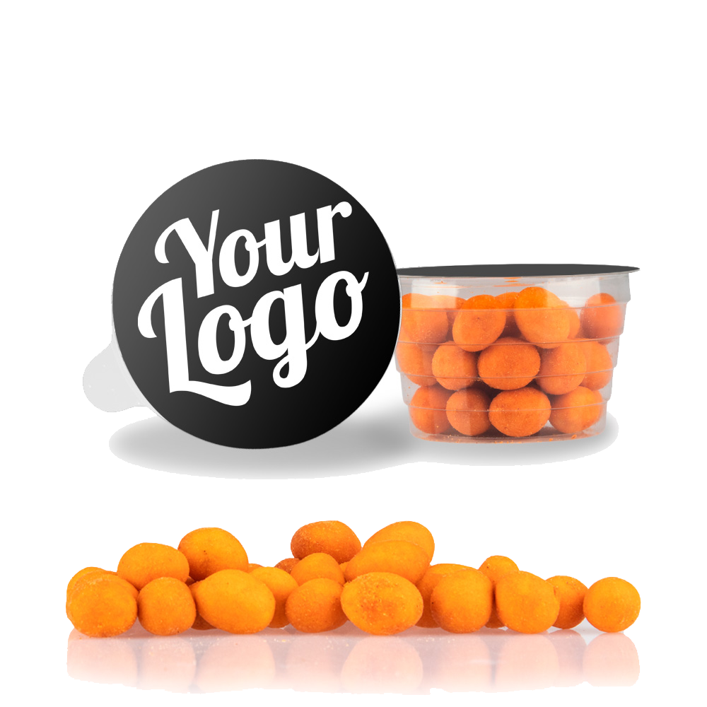 Vil du give dine kunder eller samarbejdspartnere en anderledes og smagfuld overraskelse? Vores snackbæger med chilinødder er en skarp snack med kant - selvfølgelig med dit logo trykt på låget i et dækkende farvetryk. Chilinødderne kombinerer det sprøde og det stærke på perfekt vis og er ideelle som messesnack, firmagiveaway eller som en del af en lækker goodiebag.